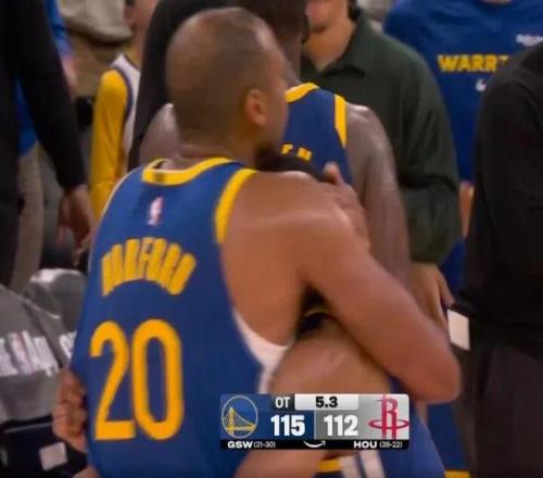 最后5.3秒,勇士领先3分立于不败之地,梅尔顿与霍福德紧紧相拥