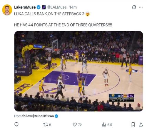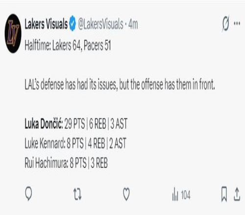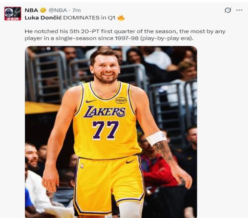 这场比赛湖人的詹姆斯、艾顿、克勒贝尔都无法出战,东契奇与里夫斯成为主攻点,此役没有勒布朗后东契奇的发挥令人叹为观止,首节他各种外线高难度三分命中打得卡莱尔找不着北,首节12分钟里,9中7,三分5中5,罚球4中3狂揽22分4篮板3助攻1抢断1盖帽。
