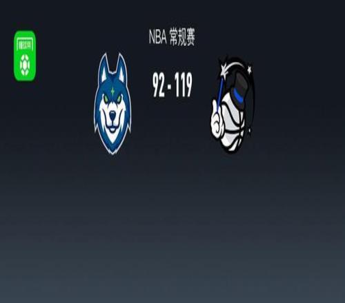 第四节森林狼爱德华兹拿下3分,魔术贝恩拿下12分,最终森林狼92-119不敌魔术