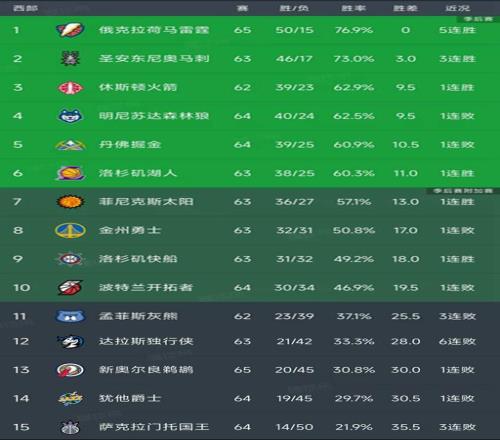 北京时间3月8日,NBA常规赛大部分球队至少进行了62场比赛,剩下不到20场常规赛已经是冲刺阶段了,我们看看今日西部的最新排名!