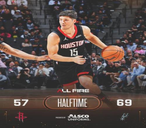 一旦杜兰特在低位接到球,文班立刻从内线出来,跟凯尔登一起夹击杜兰特。阿门-汤普斯被放空,没有三分投射太致命了。上半场火箭全队三分球15中4,三分命中率只有26.7%。马刺榜眼哈珀爆发,半场8中7高效砍下17分3助攻!