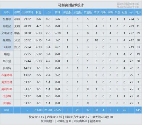 过去15场比赛,马刺豪取14胜1负,这是马刺队史自2015-16赛季以来,连续15场的最佳战绩。两年之前马刺22胜60负,排名西部倒数第二,现在他们要冲击总冠军了。马刺本场首发:卡斯尔、福克斯、瓦塞尔、尚帕尼、文班亚马。