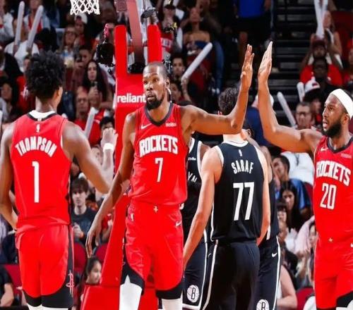 对阵马刺队的比赛火箭首发:汤普森、贾巴里史密斯、杜兰特、伊森、申京。