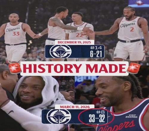 北京时间3月12日,NBA常规赛:快船153-128大胜森林狼。此役过后,快船战绩来到33胜32负,正式超过五成胜率!本赛季前27场比赛,快船只有6胜21负,接下来他们取得了一波27胜11负。快船也由此打破了一项NBA历史纪录!