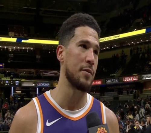 北京时间3月13日,NBA常规赛太阳客场123-108战胜步行者。赛后,太阳队球员德文-布克接受了媒体采访。