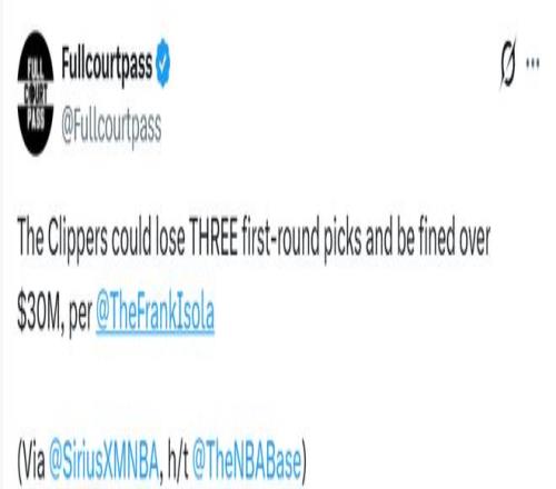 “我听说, 我也不知道真不真,我听说他们(快船)可能会被没收三个首轮签,”Isola在节目上说道。