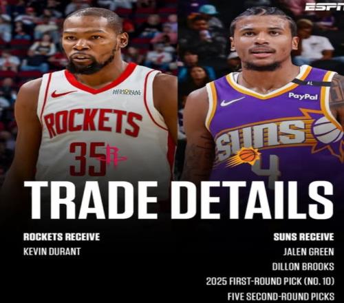 去年休赛期火箭队用杰伦-格林、狄龙、2025年10号签、5个次轮签从太阳换来了凯文-杜兰特,CBS、TA、ESPN多个权威媒体都给出了A-或A的交易评级,可随着赛季的深入这种风评呈现了相反的态势。