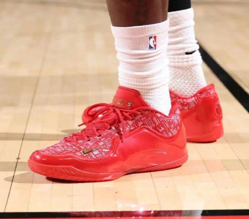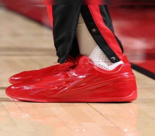 杜兰特和詹姆斯都选择了大红色战靴,而漆面皮材质的KD 19,和此前几代确实有很大区别。