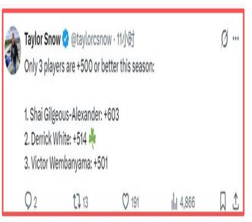 当NBA本赛季正负值榜新鲜出炉的那一刻,全联盟的“懂球帝”们集体集体破防、当场愣住——不是因为亚历山大的+603太离谱,也不是因为文班亚马的+501配不上状元身份,而是排在第二的那个名字,离谱到让所有人都得揉一揉眼睛:德里克·怀特,+514。