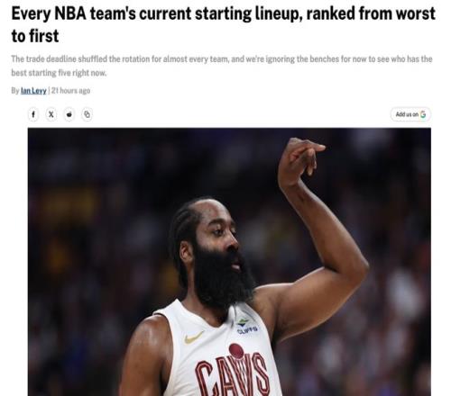 在全明星周末到来,各支球队基本敲定本赛季核心阵容后,美媒《fansided》根据各队现有阵容评选并公布出30队首发实力榜单,其中骑士获哈登后飙升第4,火箭队第7勇士14湖人17存在不小争议。