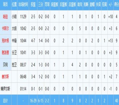 里弗斯队数据如下: