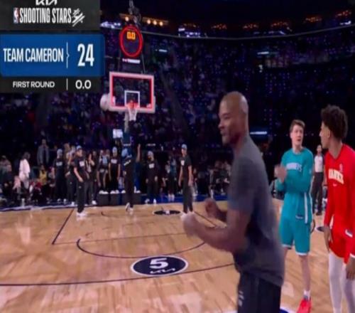 尼克斯队第四位登场,布伦森、唐斯携手队史名宿阿兰-休斯敦出战,他们前几个点表现出色连续得分,右侧弧顶接连打铁,中路唐斯命中,底角中距离阿兰-休斯敦命中,中圈四分点唐斯与布伦森连续进球,尼克斯队得到31分,携手24分的卡梅隆队晋级决赛。