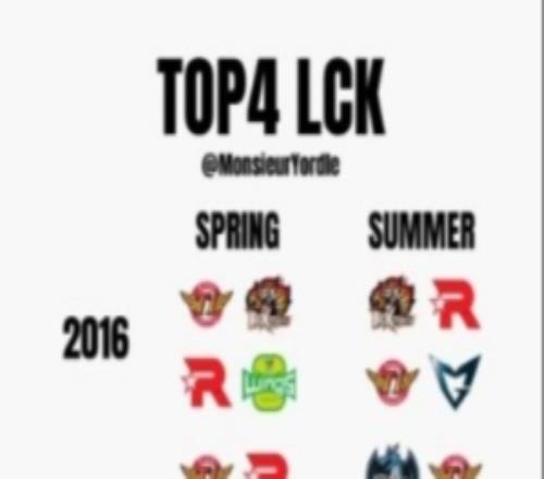电竞体育2月26报道 外媒统计2016年以来LCK每赛季前四: