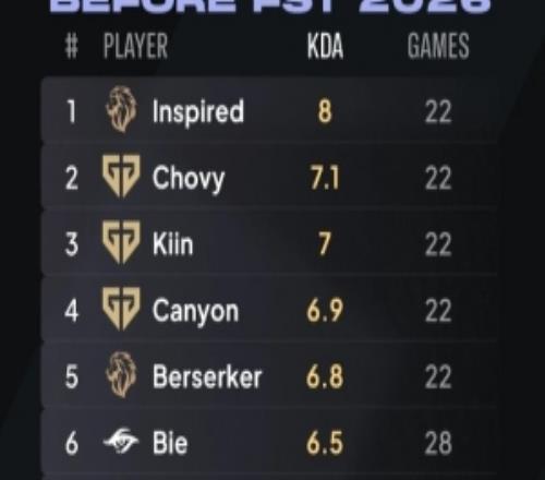 1-Inspired:KDA 8、比赛数22;