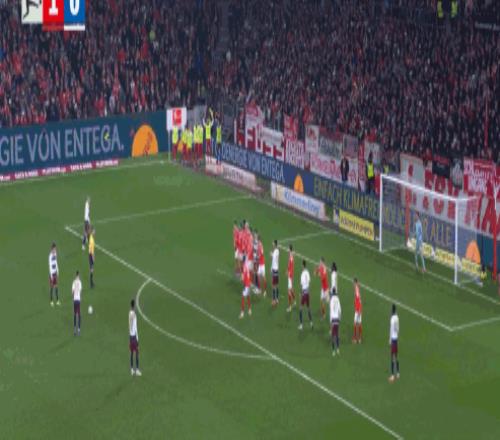 第66分钟,扳平比分,法比奥-维埃拉任意球击中人墙变线入网,汉堡1-1