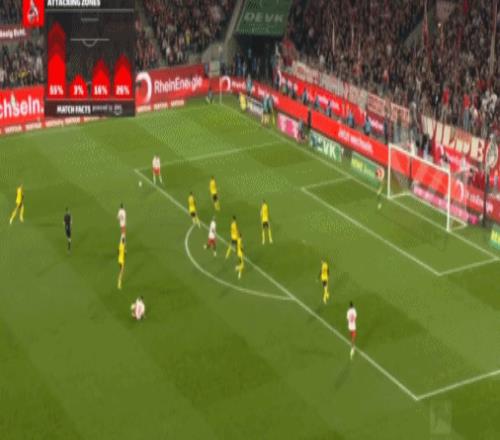 第17分钟,拜尔头球送助攻,吉拉西铲射破门,多特1-0科隆