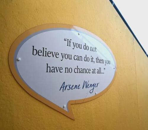 曼斯菲尔德的主场内贴着一句温格的名言:“如果你都不相信自己能做到,那么你就完全不可能做到……”