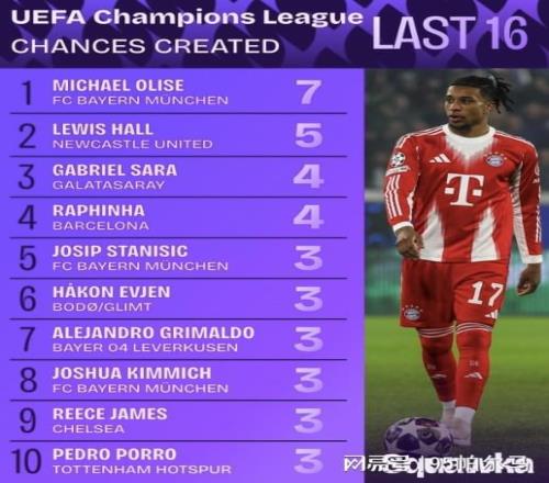 抛开传射建功,奥利塞此役创造出7次机会,一举刷新了个人在欧冠单场中的新纪录,在叠加效应之下,全场最佳球员的头衔没有一点水分。