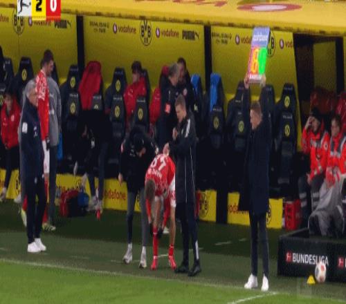 第27分钟,美因茨换人,斯特凡-贝尔伤退,波图尔斯基替补上场
