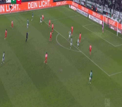 第29分钟,凯恩回撤接应,一脚手术刀直传打穿不莱梅的后防线,路易斯-迪亚斯左路高速插上,小角度射门被巴克豪斯扑出。