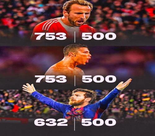 大英帝星用了743场比赛轰入500球,进球效率排在第二;那排在他前面的又有谁呢?自然就是球王梅西啦,他仅用了632场完成500球的里程碑,足足比凯恩少了111场比赛;第三人则是已经打进了962球的C罗,葡萄巨星虽然是足坛进球历史第一人,但是在500球里程碑,他胜了753场,比凯恩还多了10场。
