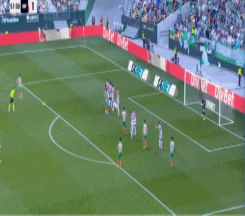 第90+10分钟,皮球出界在先,贝蒂斯进球无效