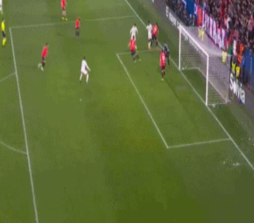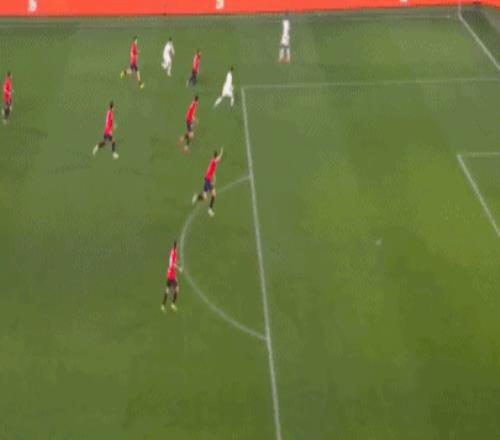 伤停补时第3分钟,居莱尔角球传中,楚阿梅尼凌空扫射,埃雷拉飞身将球托出横梁。