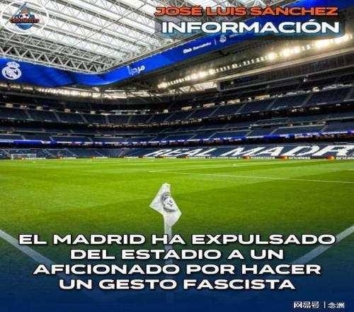 此外,一名皇马球迷赛前在死忠看台内做出法西斯手势被摄像头拍到,随后被驱逐出场。赛后,皇马立刻官方宣布,对这名俱乐部会员启动开除程序。
