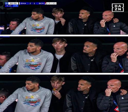 本场与本菲卡的比赛,赫伊森与同样受伤的贝林厄姆一起出现在看台上。开场15分钟,拉法席尔瓦的进球帮助本菲卡1-0领先。但皇马1分钟后就凭借琼阿梅尼的进球扳平比分。下半场第70分钟,拉法席尔瓦的外脚背撩射击中横梁,皇马逃过一劫。3分钟后,卡马文加与劳尔-阿森西奥同时跃起争顶结果狠狠撞在一起,最终阿森西奥被担架抬出球场。
