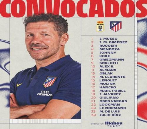马竞客战奥维耶多大名单: