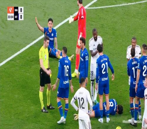 虽然实力并不占优,但是赫塔菲的攻势却丝毫不逊色!从比赛开始,就与强大的皇马,展开了针锋相对的较量,并且数次攻到禁区内制造险情。维尼修斯、居莱尔连续浪费良机。吕迪格膝盖恶意顶里科的头部,导致后者痛苦翻滚!但是裁判竟然没有给出任何的表示。