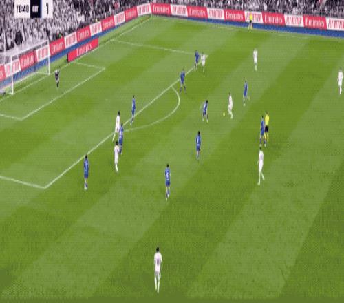 第39分钟,面对赫塔费的传中,吕迪格和琼阿梅尼连续头球解围,萨特里亚诺不等皮球落地,一记神奇的天外飞仙,皮球直挂死角。