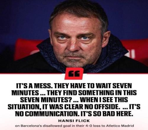 赛后弗利克表示:“他们(马竞)更强大,也更渴望进球。今天没有任何借口,但我们会卷土重来。”他保证,“一切尚未定论。我们需要所有巴萨球迷来到我们的球场,我们将战斗90分钟,力争晋级决赛。我们渴望赢得冠军。”