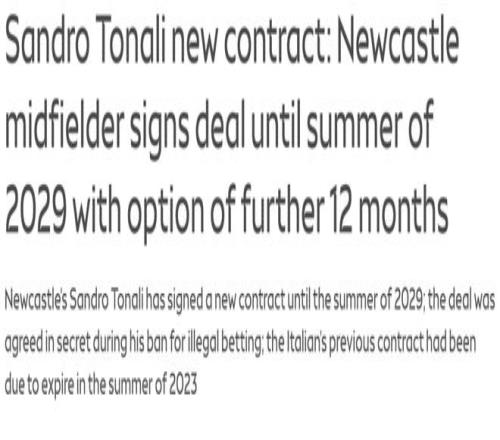 纽卡斯尔如果能获得欧冠资格,就有机会留下托纳利。但他们在英超落后很多,欧冠淘汰赛则在此抽中巴萨,想要夺冠继续参加下赛季的比赛,可能性非常渺茫。