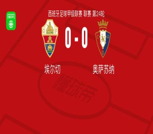 北京时间2月14日西班牙足球甲级联赛 联赛 第24轮,埃尔切主场对阵奥萨苏纳。最终比分埃尔切 0-0 奥萨苏纳。球队阵容技术统计埃尔切队免费观看_英超联赛免费观看_奥萨苏纳队免费观看_埃尔切队高清在线_英超联赛高清在线_奥萨苏纳队高清在线