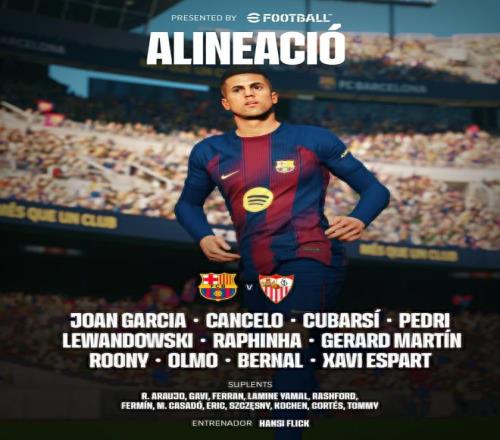 替补:4-阿劳霍、6-加维、7-费兰-托雷斯、10-亚马尔、14-拉什福德、16-费尔明-洛佩斯、17-卡萨多、24-埃里克-加西亚、25-什琴斯尼、31-迭戈-科亨、36-科尔特斯、43-汤米-马克斯
