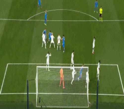 第11分钟,波罗挑传,穆阿尼打门踢疵