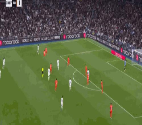 第55分钟贡萨洛加西亚半单刀的机会没有把握住,被回防的防守球员将皮球破坏,第63分钟卡瓦哈尔头球解围失误,给了穆尼奥斯直接打门的机会,但被库尔图瓦神勇化解,第90分钟皇马获得前场右侧定位球的机会,居莱尔开到前点,维尼修斯头球建功,可惜VAR介入后认为越位,熊皇无缘帽子戏法。