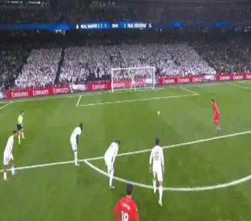 第31分钟,皇马左路制造机会,卡雷拉斯插上适配巴尔韦德,皇马的领导者迅速推射破门。虽然是推射,可是皮球速度实在太快了,力度也猛对此皇社的门将无计可施。3-1。