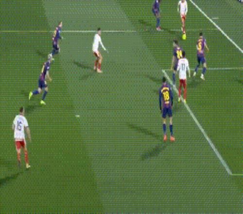 第61分钟,赫罗纳打出了机会,巴萨过分上压造成了防守问题,赫罗纳的左路几人居然突破了巴萨整条框架,击破了其多人自主防守阵的,这实在令人想不到。