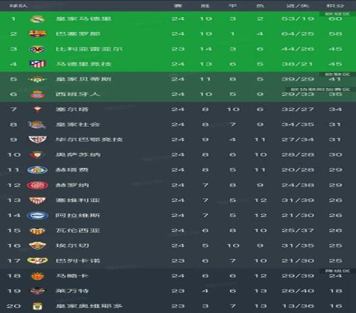 北京时间2月17日,随着巴萨1-2爆冷不敌赫罗纳,西甲第24轮的比赛全部结束,最新排名出炉,巴萨的积分停留在58分,落后皇马2分,丢掉榜首,皇马重新回到了领头羊的位置,比利亚雷亚尔和马竞分列第三和第四的位置!