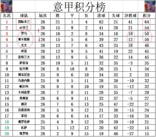 积分榜方面,AC米兰主场爆冷被帕尔马绝杀后,近2轮只拿到1分,国米那边一波7连胜,本轮过后国米对AC米兰的领先优势确定在10分,那不勒斯,尤文同样是无力追赶,恐怕本赛季意甲的冠军争夺是要没有悬念了。罗马今天大胜后,凭借净胜球优势超过那不勒斯升到第3位。