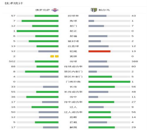 北京时间3月8日意大利足球顶级联赛第28轮,佛罗伦萨主场迎来帕尔马的挑战。本场比赛场面沉闷,双方共1次射正。最终佛罗伦萨0-0战平帕尔马。