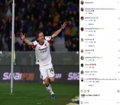 在本轮意甲,米兰2-1击败比萨。本场比赛40岁莫德里奇打进绝杀,赛后也当选全场最佳球员。莫德里奇在社媒晒出庆祝照片,配文写道:“我们会继续战斗下去,永不放弃!米兰加油!”