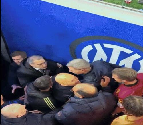 混乱的,不止是两队在不同时段的状态起伏,也是场外的那些风波。特别是在中场休息时,尤文主帅斯帕莱蒂、巨头科莫利、经理基耶利尼等人,在更衣室通道前,对裁判进行疯狂的围攻,成为这场比赛的一道奇景。