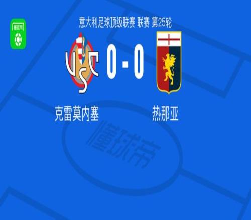 北京时间2月15日,意大利足球顶级联赛第25轮展开较量,克雷莫内塞坐镇主场迎来热那亚的挑战。经过全场比拼,双方均未能攻破对方球门,最终以0-0的比分握手言和。