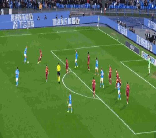 第40分钟,扳平比分,斯皮纳佐拉远射,皮球折射入网,那不勒斯1-1