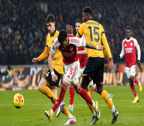 上轮被布伦特福德逼平,留给阿森纳可犯错的空间正在减少,因为联赛杯决赛的缘故,枪手第31轮比赛被提前进行,面对这赛季成绩糟糕的狼队,枪手却再次爆出冷门。萨卡开场第5分钟便先拔头筹,因卡皮耶也在下半场归来迅速扩大优势;然而第56分钟布埃诺远射破门吹响反击号角,伤停补时第3分钟,拉亚出击与卡拉菲奥里配合失误,后者不慎打进乌龙球,阿森纳2:2被绝平。