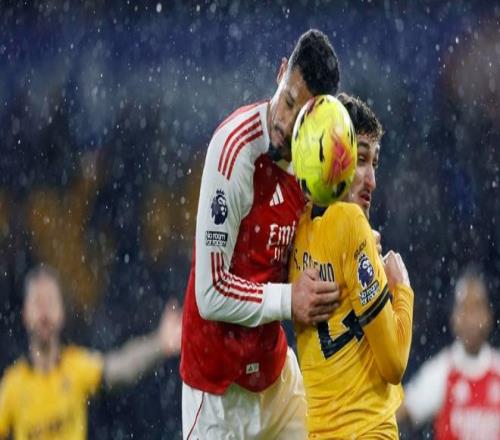 北京时间2月19日英格兰足球顶级联赛第31轮,狼队主场对阵阿森纳。上半场萨卡闪击,马丁内利造险。比赛中。图片...