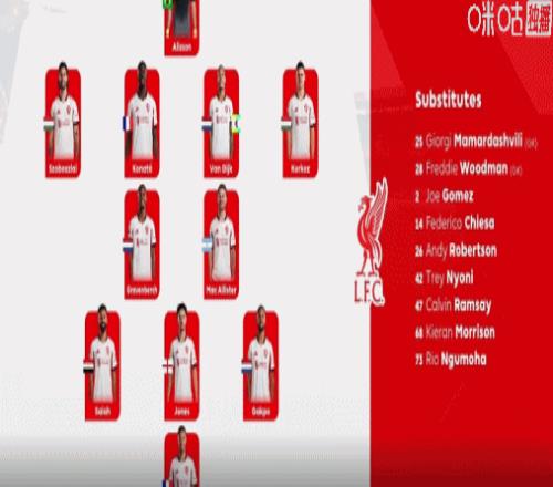 利物浦临时调整,琼斯替换维尔茨登场